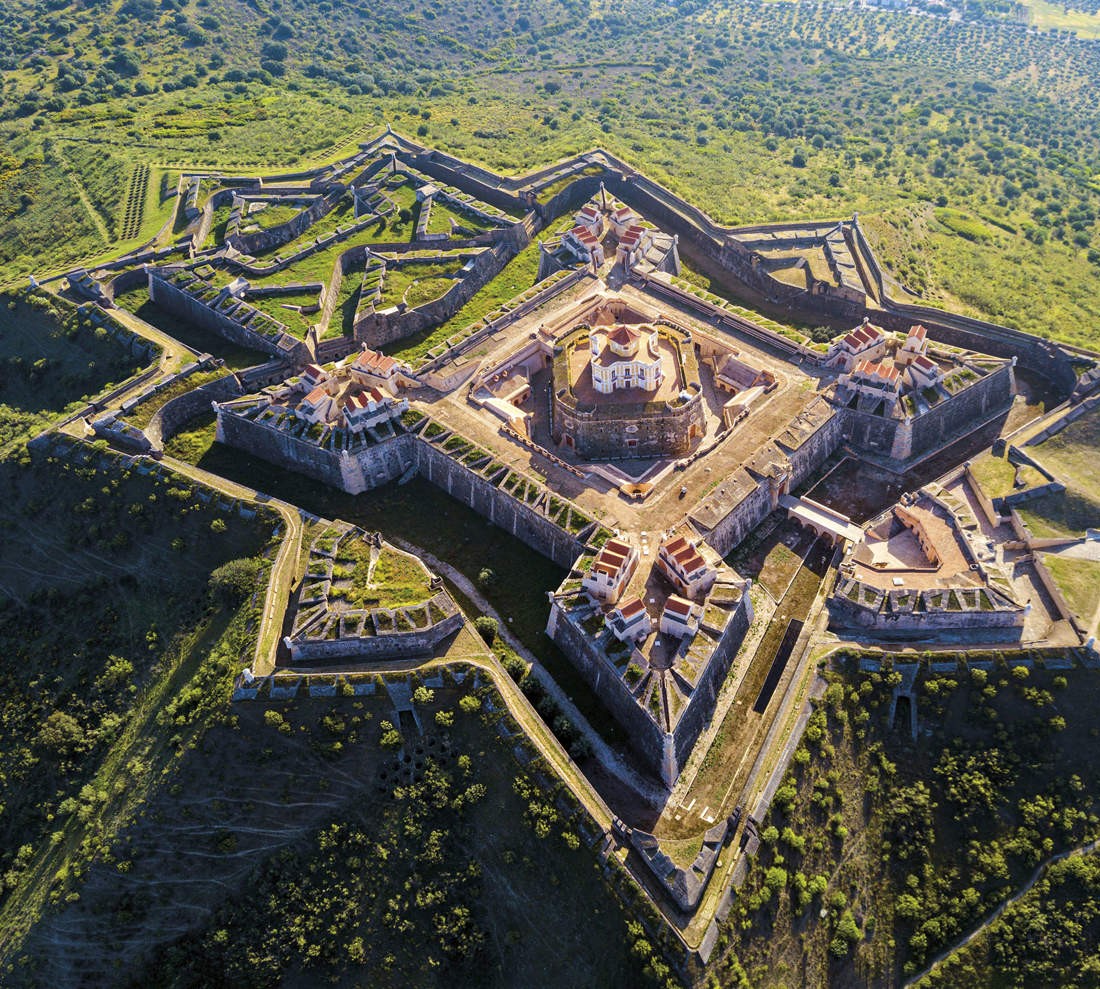 Elvas, também apelidada de "Rainha da Fronteira", inscrita na lista UNESCO desde 2012 foi fortemente fortificada a partir do século XVII, com o objetivo de guardar a principal fronteira entre Lisboa e Madrid, após Portugal recuperar a independência de Espanha em 1640. Este sistema de defesa de valas secas veio a tornar-se, na altura, no maior do mundo e o melhor sobrevivente da escola holandesa de fortificações. No interior das muralhas de Elvas, existem quartéis e outros edifícios militares, bem como igrejas e mosteiros. A cidade era abastecida de água pelo monumental Aqueduto da Amoreira, com 31 metros de altura na parte mais alta, que se estende da nascente no local da Amoreira até à Fonte da Misericórdia, no centro de Elvas, percorrendo quase 8km, permitia que o forte resistisse a um longo cerco.